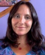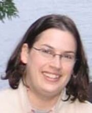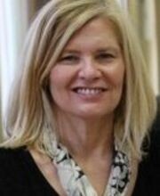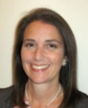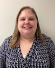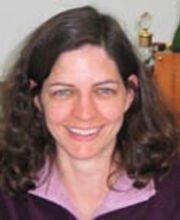 Dr. Holly Grant-Marsney smiling with long straight dark brown hair and wearing black rim glasses, a royal purple blazer and a white v-neck blouse